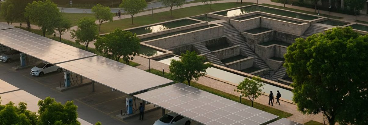 Public institutions model low-carbon futures, blending operations with hands-on learning for a sustainable India.