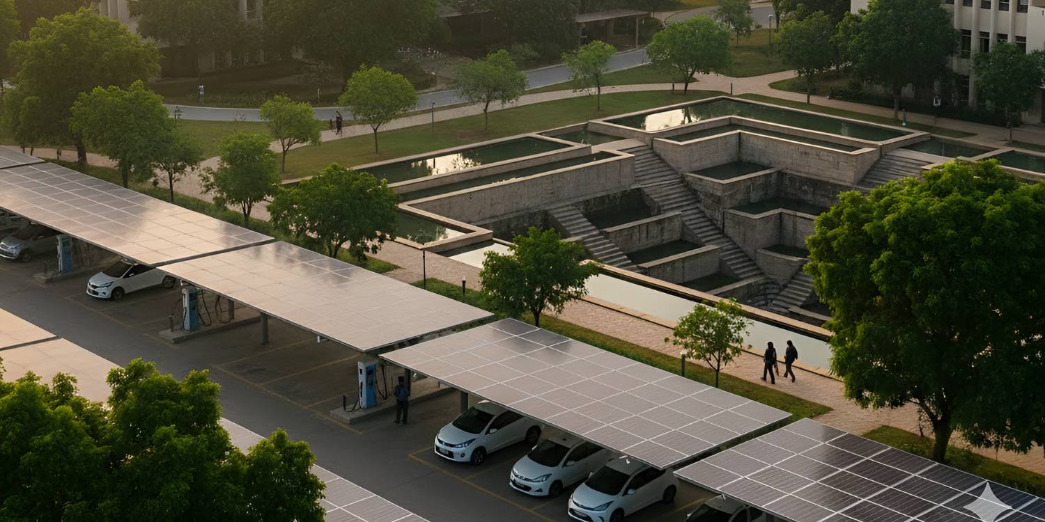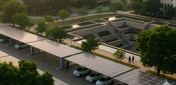 Premier technical institutes now achieve platinum ratings under GRIHA standards through zero sewage discharge systems and solar carports generating up to 500 kWp—meeting nearly half their energy needs. Anaerobic reactors treat wastewater for irrigation, while fly ash bricks and passive cooling minimize heat gain. Northern campuses promote walkability with EV charging stations and CNG shuttles, cutting transport emissions significantly.