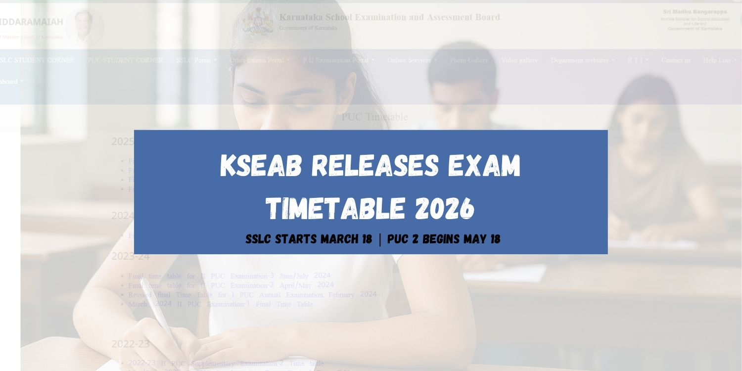 The Karnataka School Examination and Assessment Board (KSEAB) has announced the official exam schedule for SSLC (Class 10) and PUC 2 (Class 12) 2026. Students can now view and download the datesheet from the official website, kseab.karnataka.gov.in. The SSLC 1 exams will start on March 18, 2026, with the First Language paper and conclude on April 2 with the Social Science paper. SSLC 2 exams will begin on May 18, 2026, with the First Language paper and end on May 25 with Junior Technical School subjects.