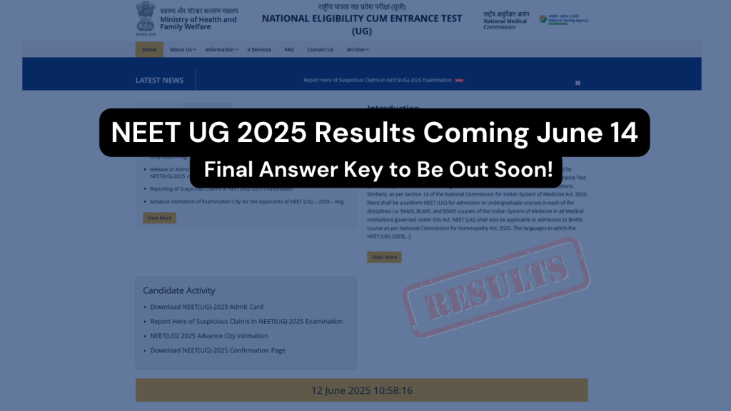 NEET UG 2025 Results Coming June 14: Final Answer Key to Be Out Soon!