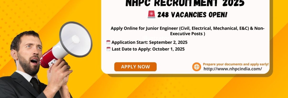 The National Hydroelectric Power Corporation Limited (NHPC) has unveiled a major recruitment drive for 2025, offering 248 vacancies for Junior Engineer roles across Civil, Electrical, Mechanical, and E&C streams, as well as various Non-Executive positions. Aspiring candidates who meet the eligibility requirements can apply for these coveted roles starting September 2, 2025, via NHPC’s official website, www.nhpcindia.com.