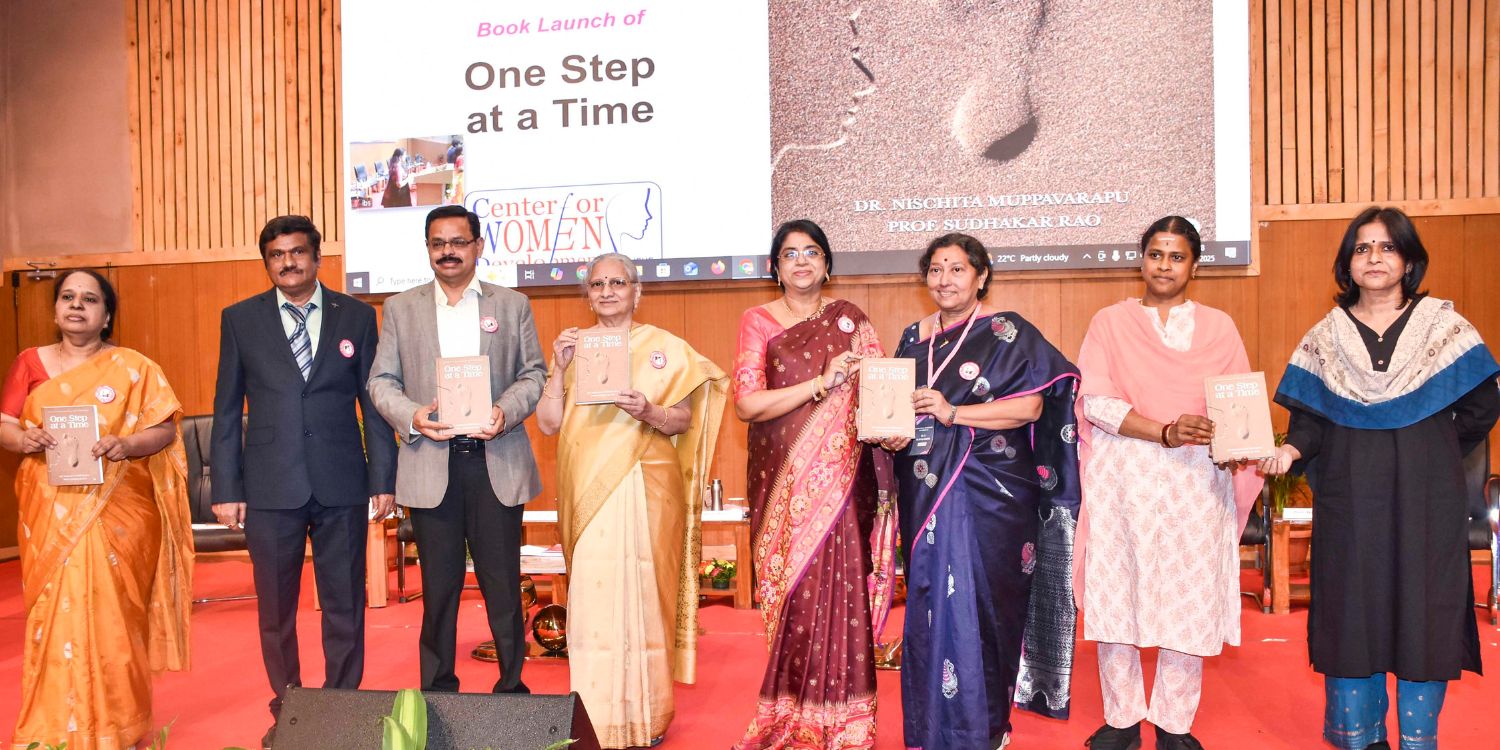 The Book “One Step at a Time” authored by Dr Nishita Muppavarapu and Prof Sudhakar Rao was launched by Mrs Sailaja Kiran, Managing Director, Margadarsi Chit Fund and Kalanjali, at the inaugural session of the “International Conference on Women 5.0: Power, Process & Possibilities” held at the ICFAI University Campus, Hyderabad on 11th December, 2025.