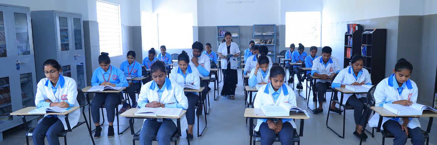 Faculty members demonstrate procedures, after which students practice under supervision, ensuring skill mastery. Classroom sessions are complemented by practical exposure, while the campus provides ample facilities, including libraries, skill labs, and recreational spaces, to support overall development.